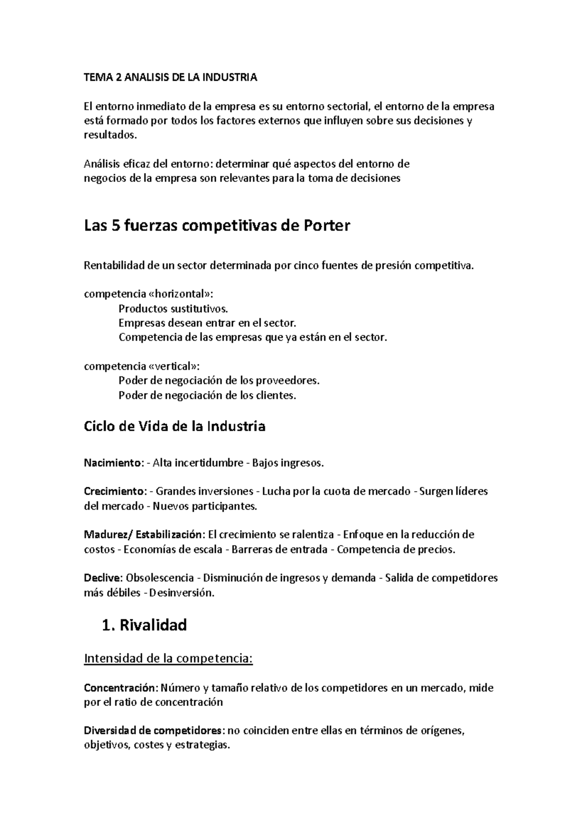 TEMA 2 Analisis DE LA Industria TEMA 2 ANALISIS DE LA INDUSTRIA El entorno inmediato de la