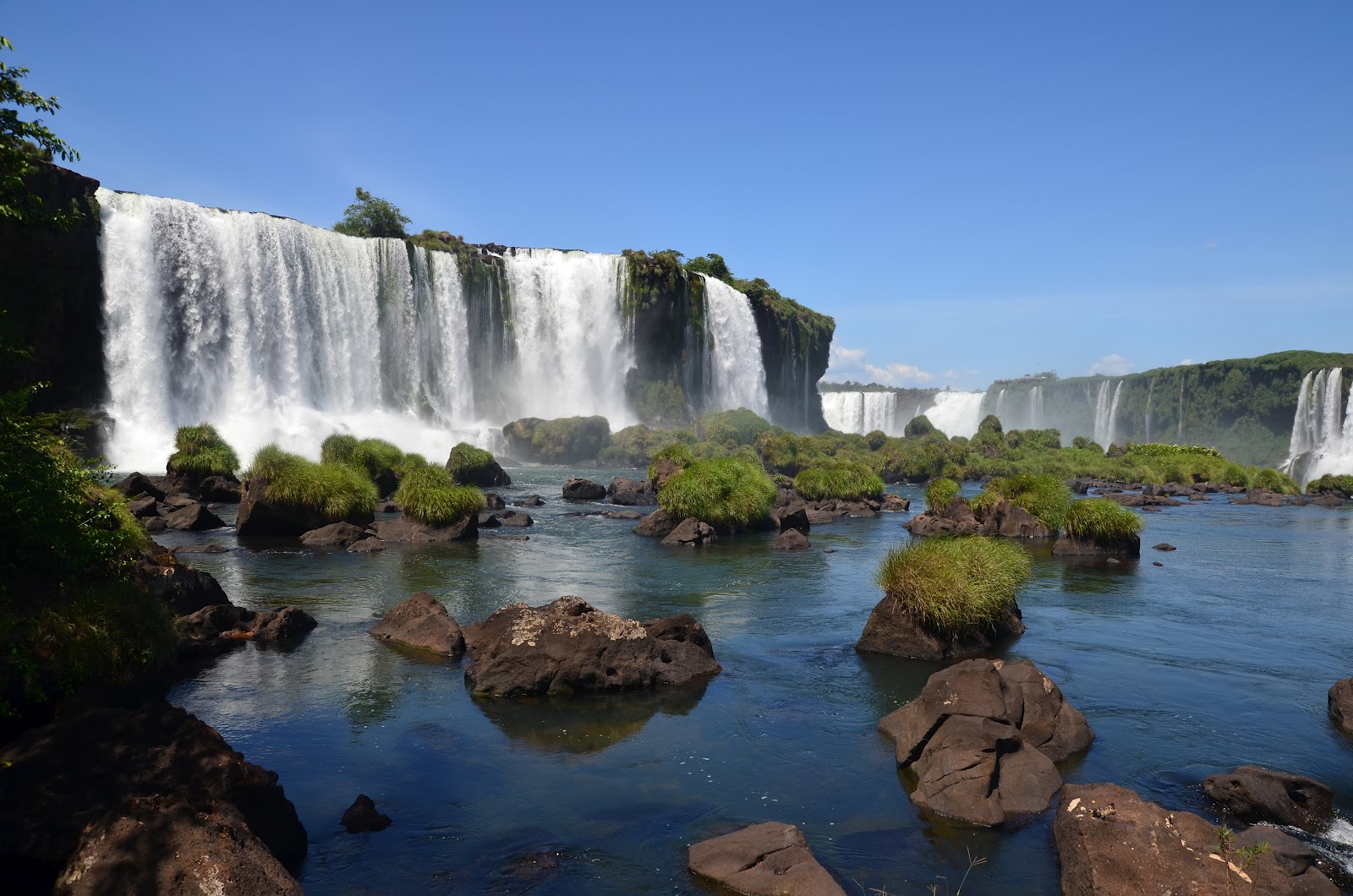 Cataratas do Iguaçu | Argentina e Brasil. O Brasil divide sua segunda maravilha natural com a Argentina. O Rio Iguaçu nasce em Curitiba e percorre o Paraná até a cidade de Foz do Iguaçu, que faz fronteira com Misiones, na Argentina. Ali, toda a água do rio forma o maior sistema de cataratas do mundo, as Cataratas do Iguaçu.