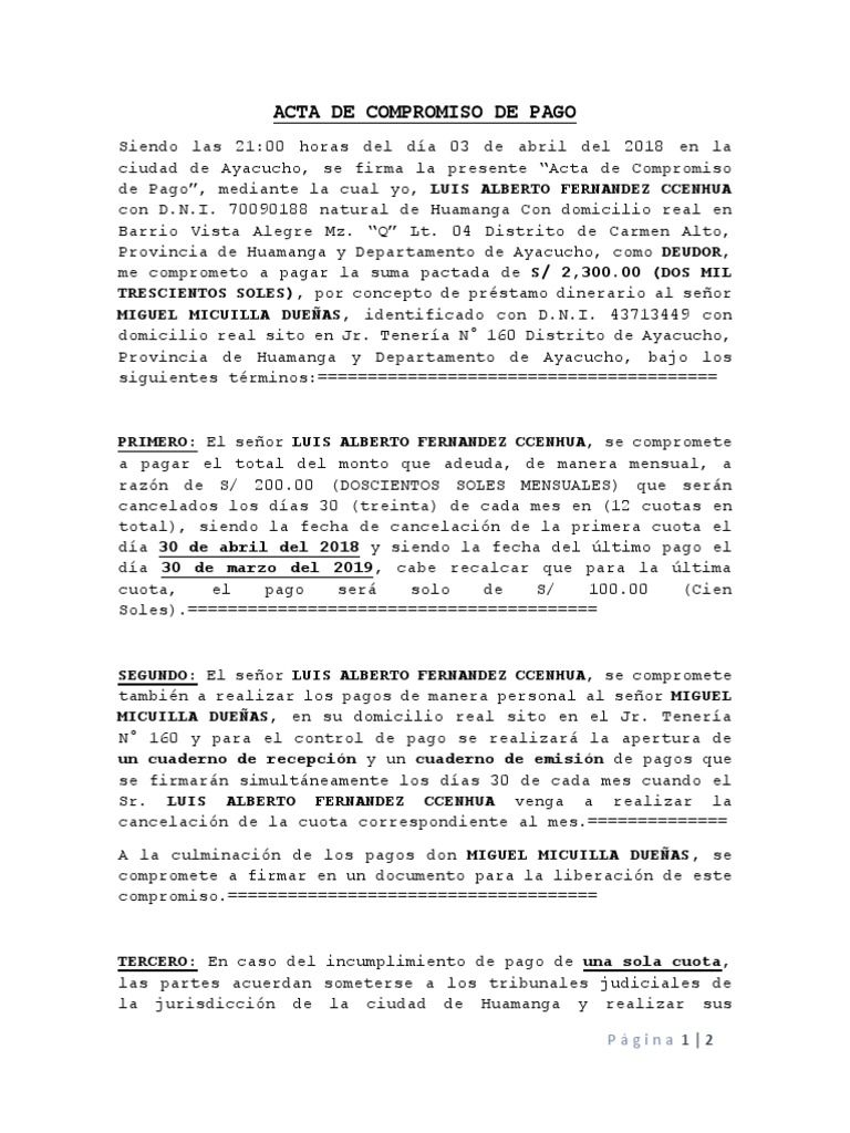 Acta de Compromiso de Pago Pagos Política