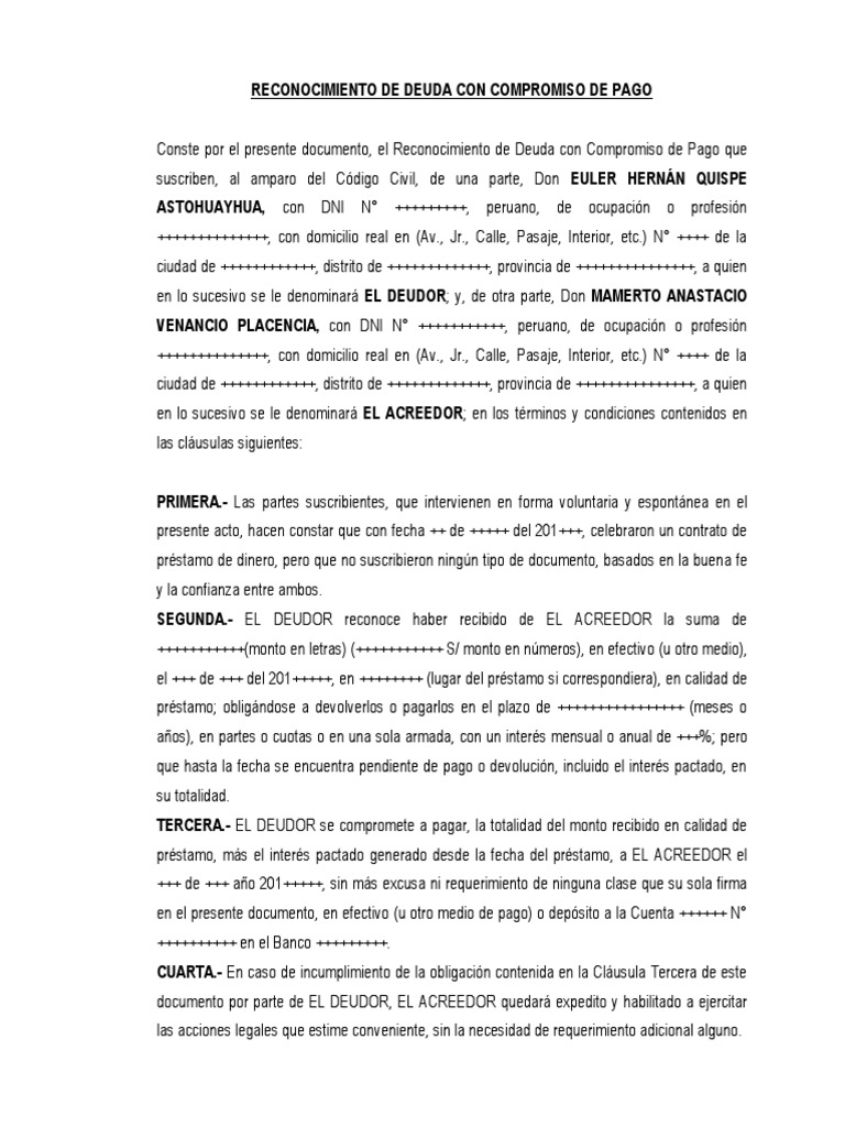 Contrato de Reconocimiento de Deuda y Compromiso de Pago Pagos Gobierno