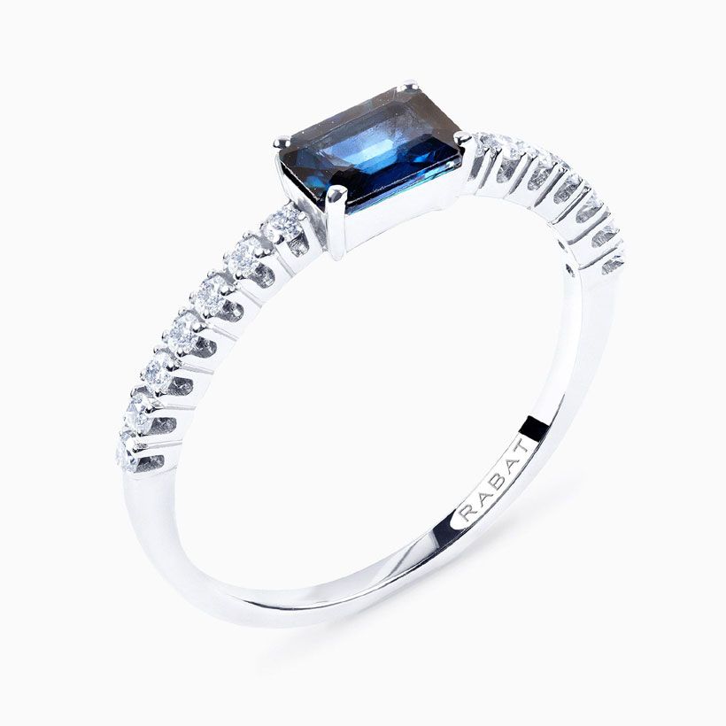 Anillo de oro blanco, zafiro y diamantes, de Yanes (1.430 euros). Anillo Attract Trilogy Round azul con baño de rodio, de Swarovski (89 euros). Con zafiros y diamantes, así era esta pieza.