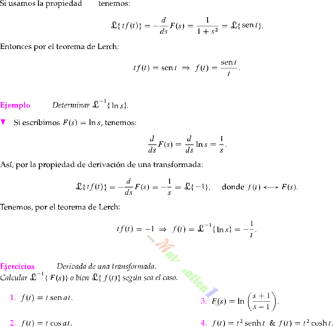 DERIVADA DE UNA TRANSFORMADA DE LAPLACE EJERCICIOS RESUELTOS