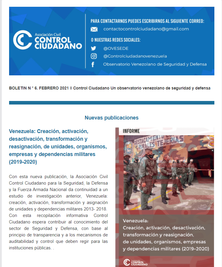 BOLETIN N ° 6. FEBRERO 2021 ǁ Control Ciudadano Un observatorio venezolano de seguridad y