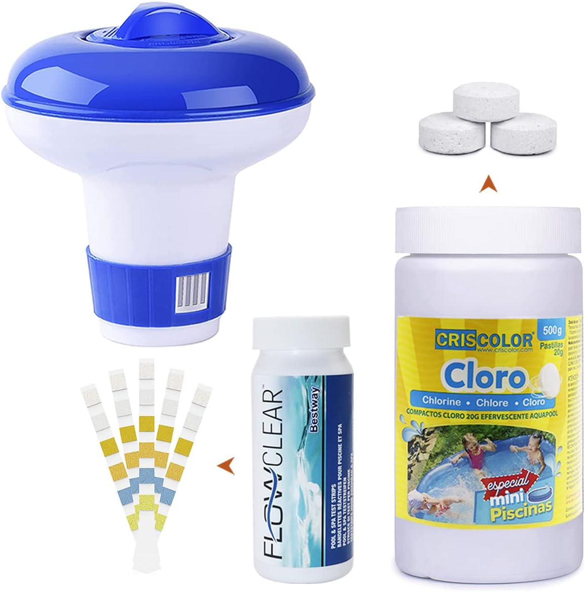 Kit Cloro Piscina Criscolor Pastillas de Cloro de 20g Compactos (500g) + Dosificador de
