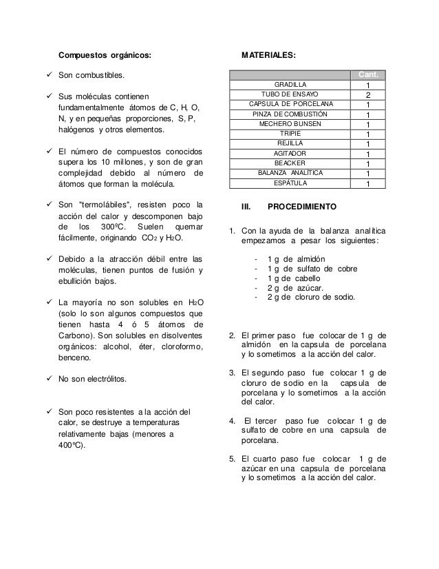 Diferencias entre compuestos orgánicos e Cuadro Comparativo