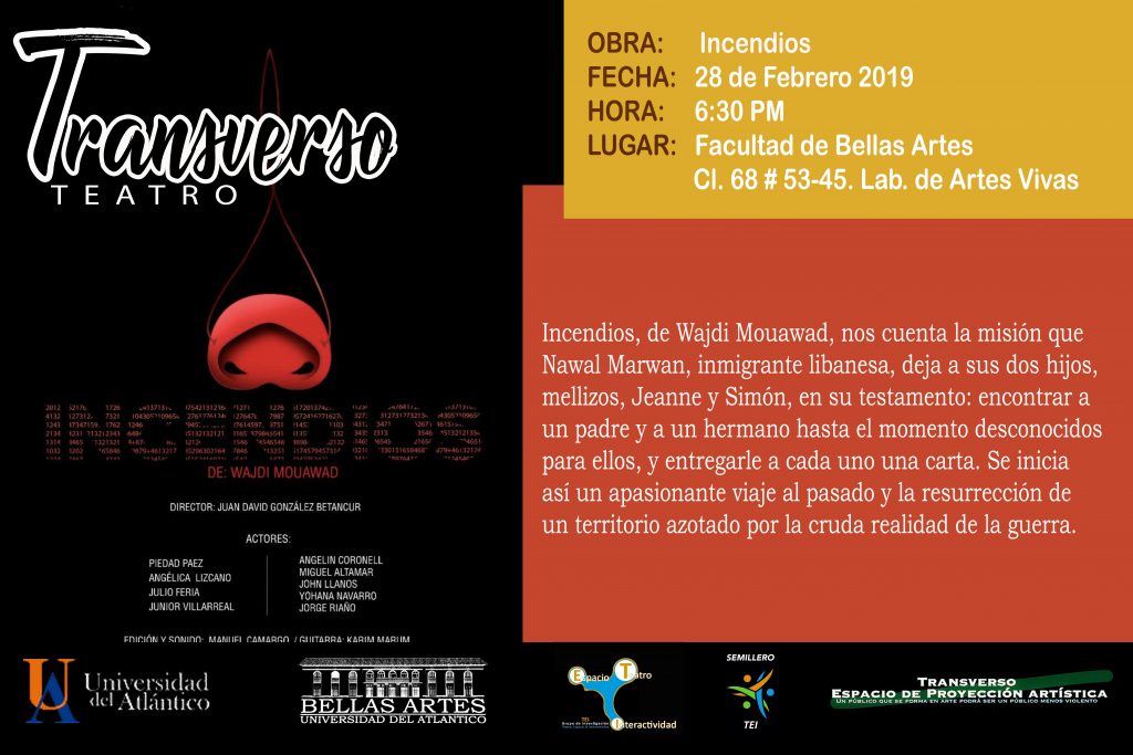 Incendios de Wajdi Mouawad es una obra que habla de la resistencia, del poder de la palabra, del oprobio de la guerra; que tiene el poder de confrontarnos con esas realidades compartidas por todos los pueblos que hemos vivido la guerra; que nos pone al frente el rostro más crudo del horror; que nos invita a creer y comprender al otro que ha padecido en carne propia el poder avasallante de los.