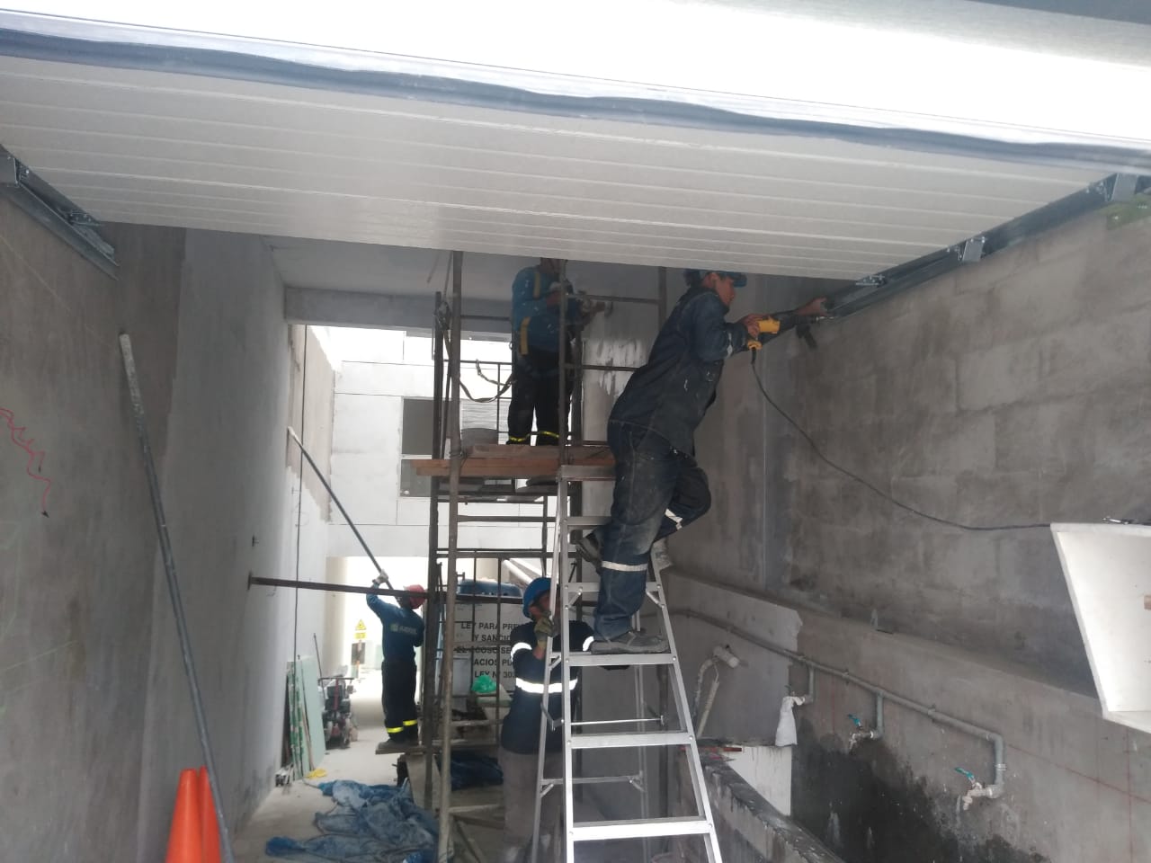 Centrar el raíl con el soporte de brazo junto al soporte de pared, esto debe estar perfecto para que la puerta funcione sin dificultad. Por último, con la ayuda de una escalera y de un ayudante colocaremos el motor en el techo y uniremos el brazo de arrastre al soporte de la puerta previamente instalado. Puerta Seccional 20 pies (6 metros) de.