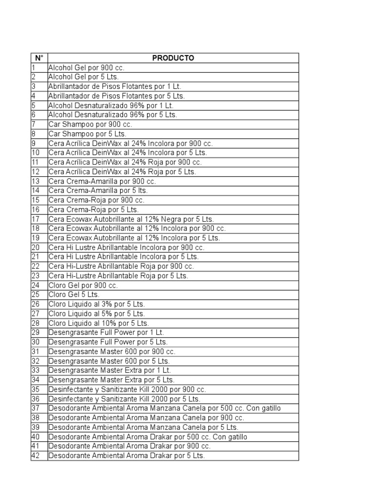 Lista de Precios Productos de Limpieza Higiene Productos de limpieza