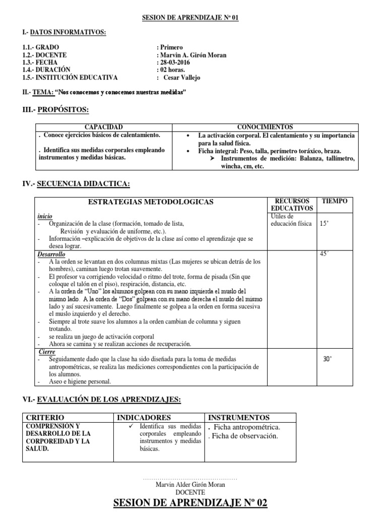 SESIÓN Nº 07 Participamos en juegos de carreras, saltos y lanzamientos con y sin obstáculos 6º PRIMA. Modelo de una sesión de aprendizaje del área de educación física, para el 6º de primaria, espero que te sirva como guía. SESIÓN DE APRENDIZAJE N° 07 - DE LA SEGUNDA UNIDAD DE APRENDIZAJE. I. DATOS INFORMATIVOS: GRADO Y SECCIÓN. 6º.